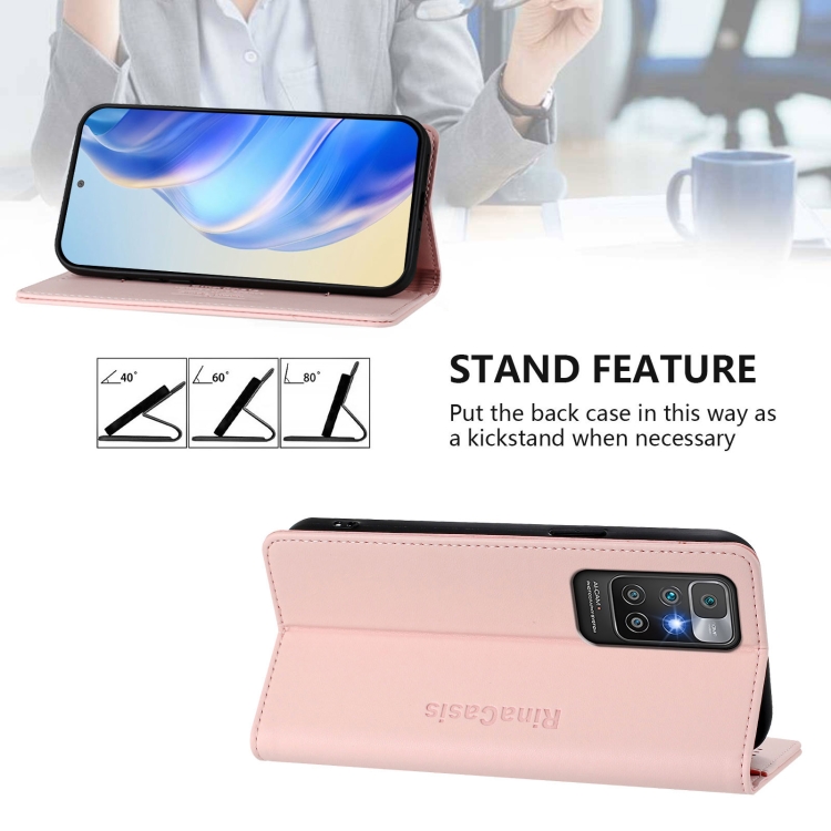 Funda de Cuero con Doble Pliegue y Succión Magnética para Redmi 10 4G 2021/2022 Global Rc01 (Rosa)