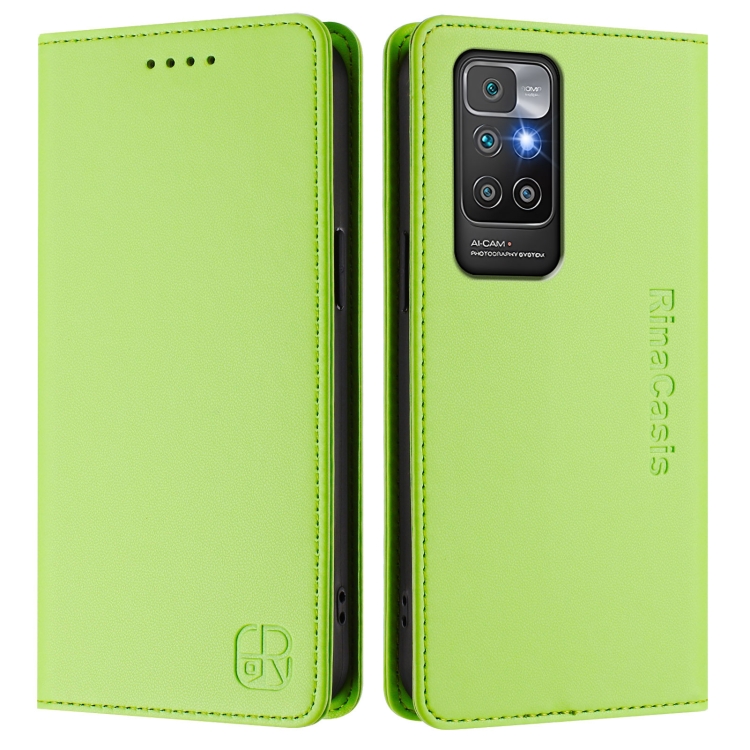 Funda de Cuero con Doble Pliegue y Succión Magnética para Redmi 10 4G 2021/2022 Global Rc01 (Verde Hierba)