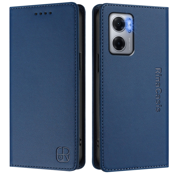 Funda de Cuero con Doble Pliegue y Succión Magnética para Redmi 10 5G / 10 Prime+ 5G Global Rc01 (Azul Oscuro)