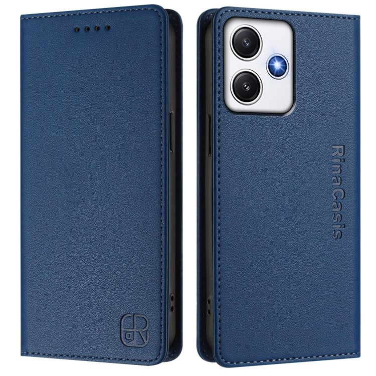 Funda de Cuero con Doble Pliegue y Succión Magnética para Redmi 12 5G/4G Global/Note 12R Rc01 (Azul Oscuro)