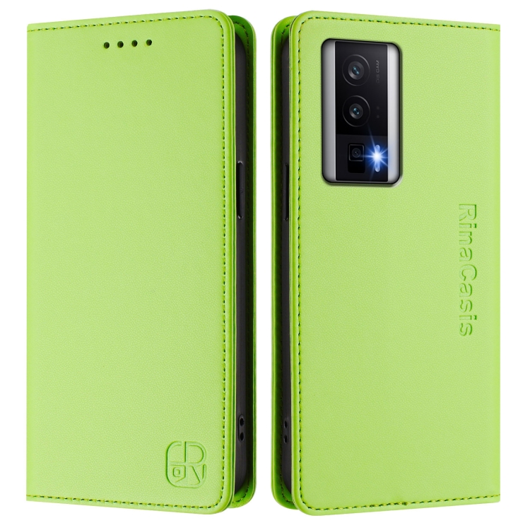 Funda de Cuero con Doble Pliegue y Succión Magnética para Redmi K60/K60 Pro Rc01 (Verde Hierba)