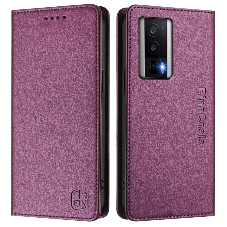 Funda de Cuero con Doble Pliegue y Succión Magnética para Redmi K60/K60 Pro Rc01 (Violeta)