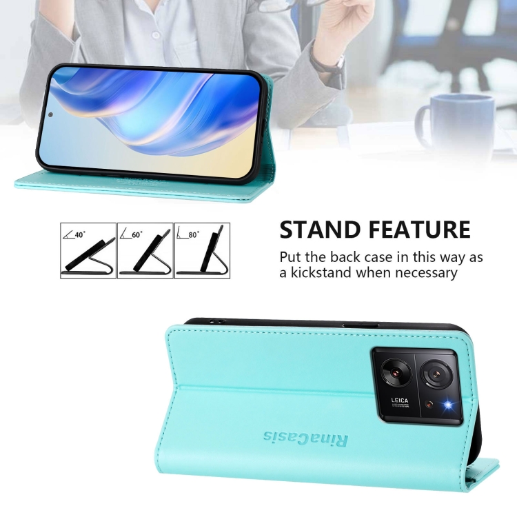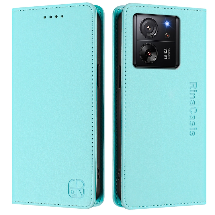 Funda de Cuero con Doble Pliegue y Succión Magnética para Redmi K60 Ultra / Xiaomi 13T / 13T Pro Rc01 (Verde Menta)