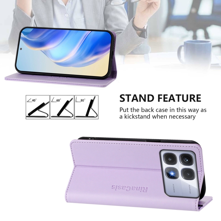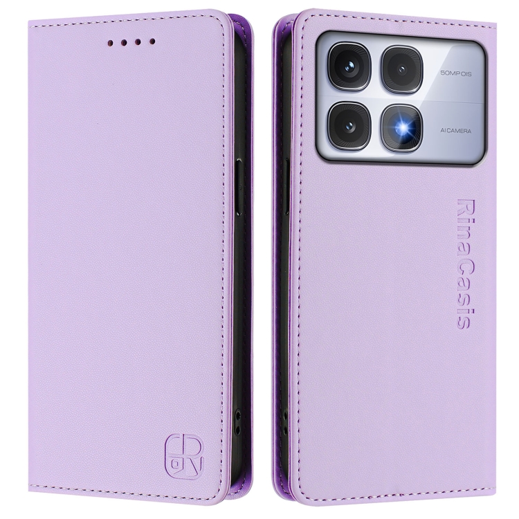 Funda de Cuero con Doble Pliegue y Succión Magnética para Redmi K70 Ultra 5G Global Rc01 (Morado Claro)