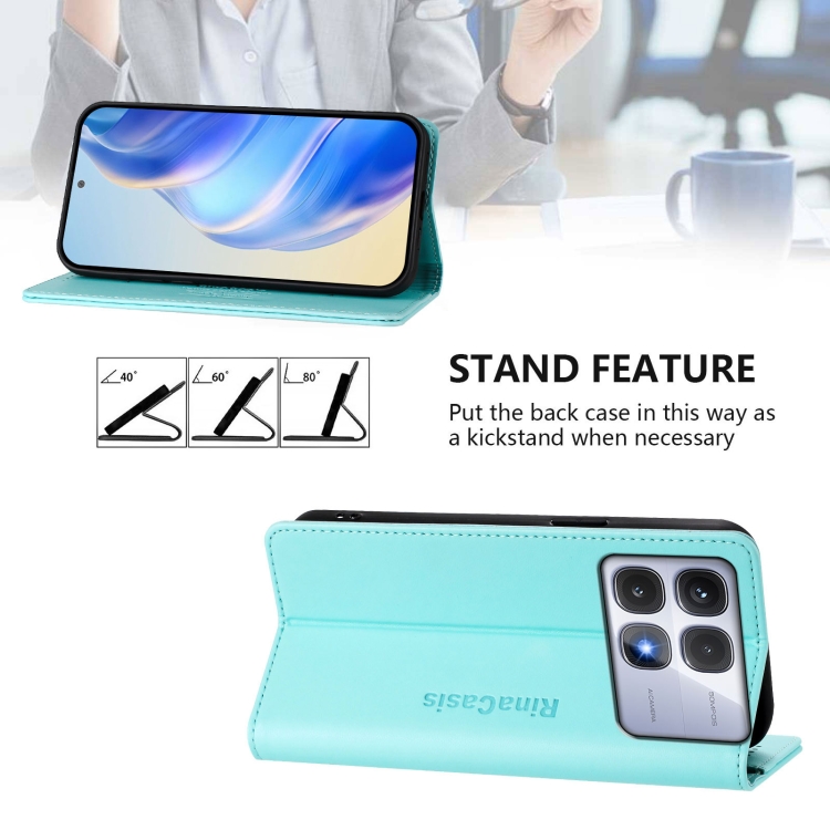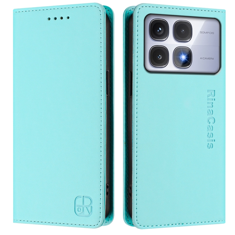 Funda de Cuero con Doble Pliegue y Succión Magnética para Redmi K70 Ultra 5G Global Rc01 (Verde Menta)