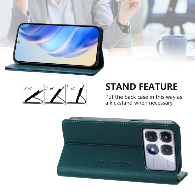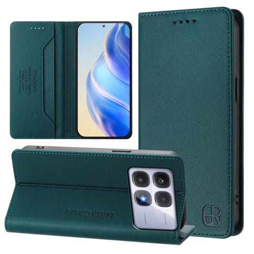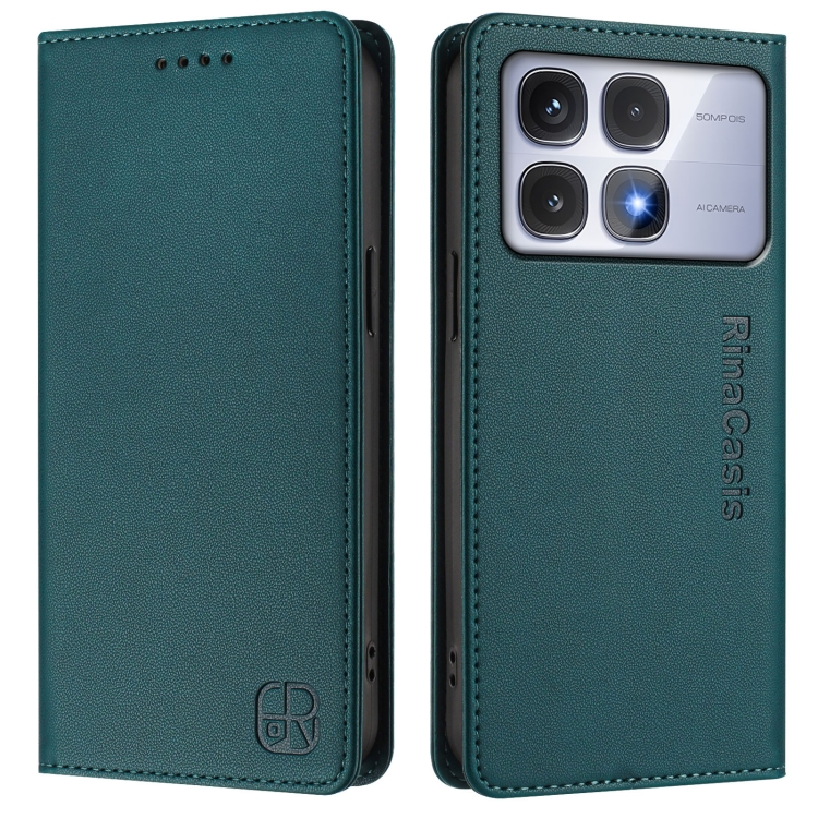 Funda de Cuero con Doble Pliegue y Succión Magnética para Redmi K70 Ultra 5G Global Rc01 (Verde Oscuro)