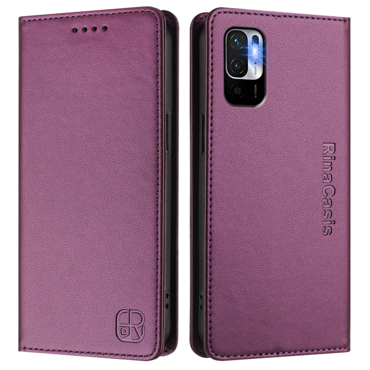 Funda de Cuero con Doble Pliegue y Succión Magnética para Redmi Note 10 5G/Note 10T 5G Rc01 (Violeta)