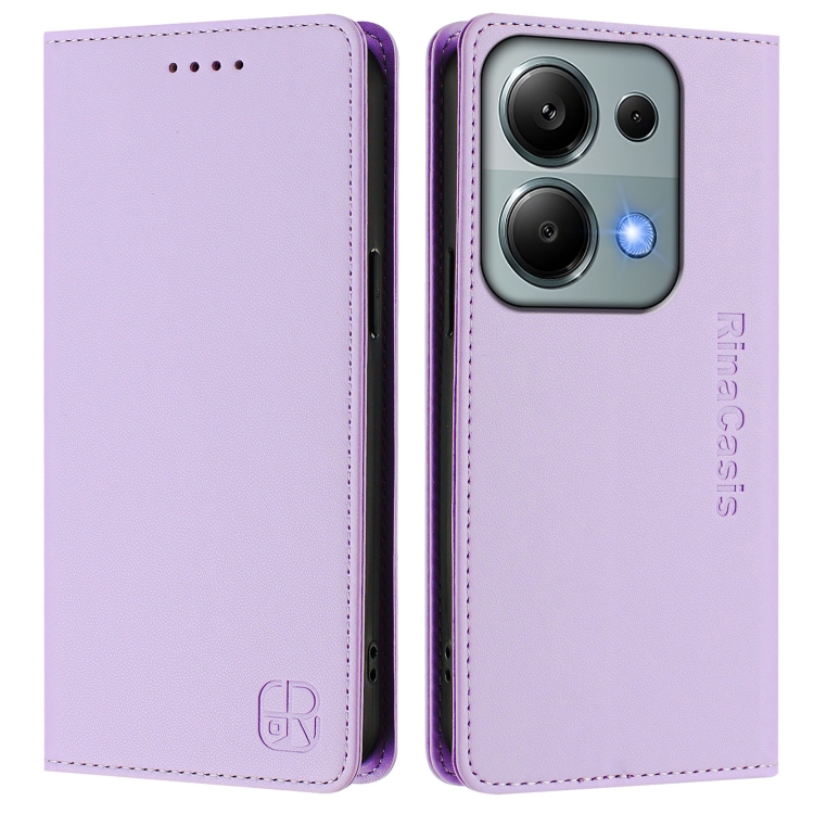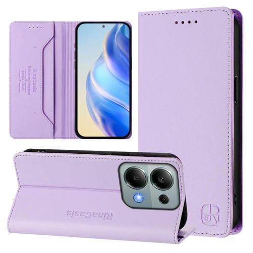 Funda de Cuero con Doble Pliegue y Succión Magnética para Redmi Note 13 Pro 4G Global Rc01 (Morado Claro)
