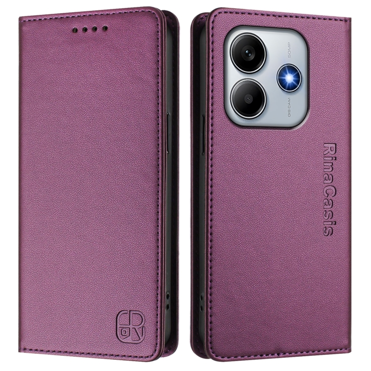 Funda de Cuero con Doble Pliegue y Succión Magnética para Redmi Note 14 5G Rc01 (Violeta)