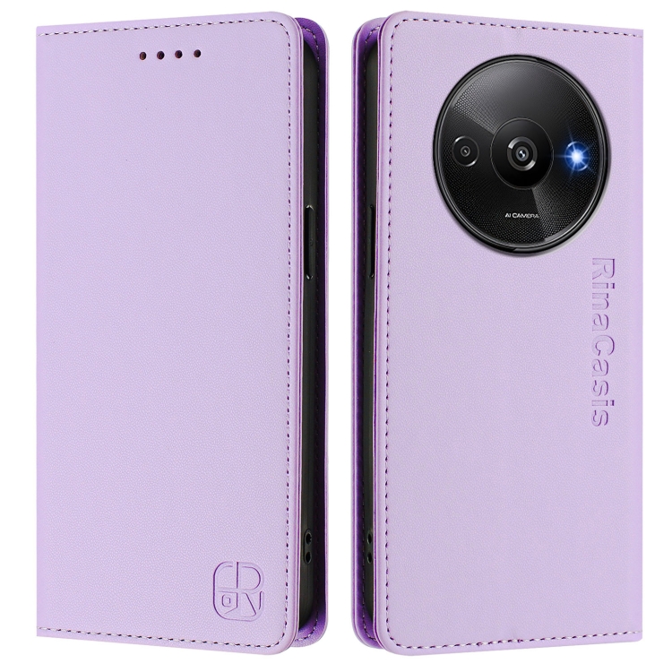 Funda de Cuero con Doble Pliegue y Succión Magnética para Teléfono Redmi A3/Xiaomi Poco C61 4G Global Rc01 (Morado Claro)