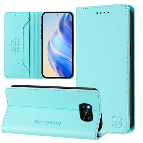 Funda de Cuero con Doble Pliegue y Succión Magnética para Teléfono Xiaomi Poco X3 / X3 Nfc / X3 Pro Rc01 (Verde Menta)
