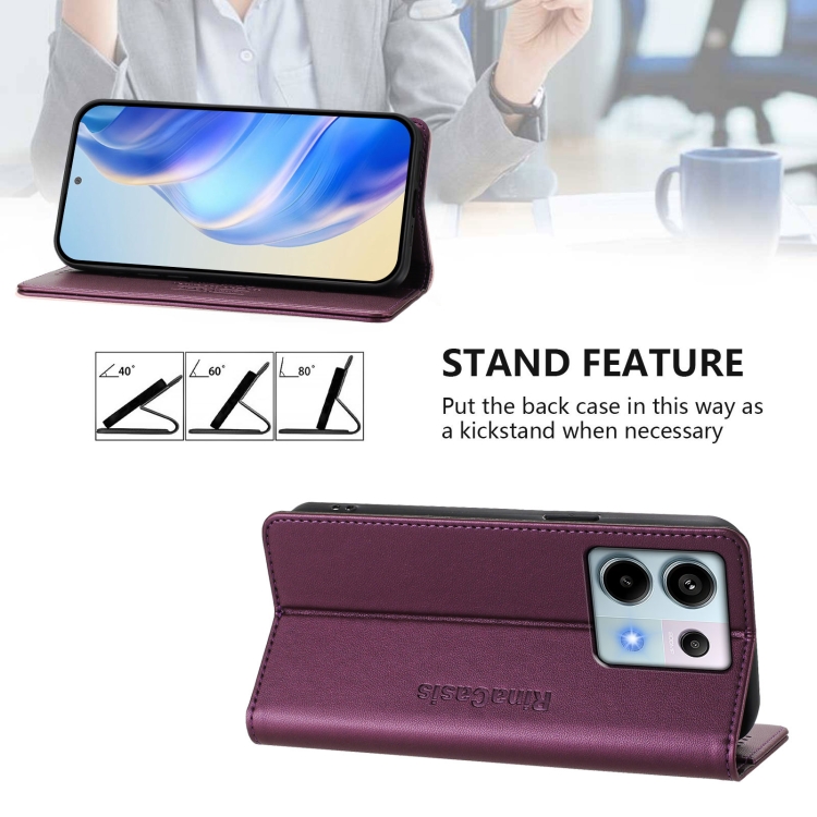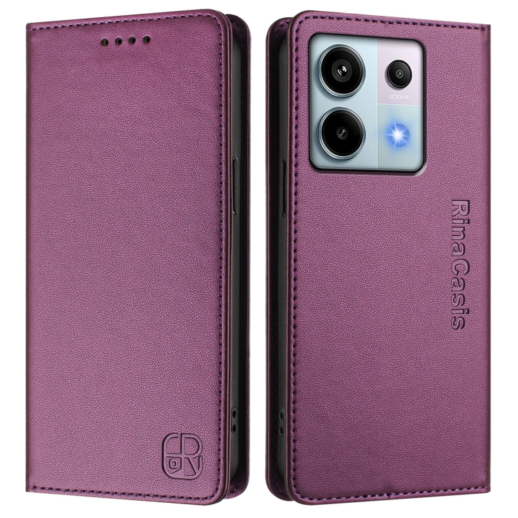 Funda de Cuero con Doble Pliegue y Succión Magnética para Teléfono Xiaomi Poco X6 5G/Redmi Note 13 Pro 5G Rc01 (Violeta)