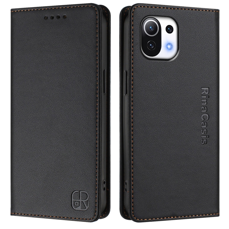Funda de Cuero con Doble Pliegue y Succión Magnética para Xiaomi Mi 11 Lite / Mi 11 Lite 5G Rc01 (Negra)