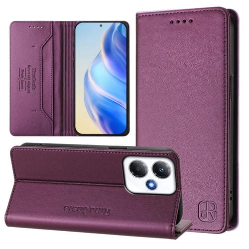 Funda de Cuero con Doble Pliegue y Succión Magnética RFID para Infinix Hot 30 Play 4G / NFC Rc01 (Violeta)