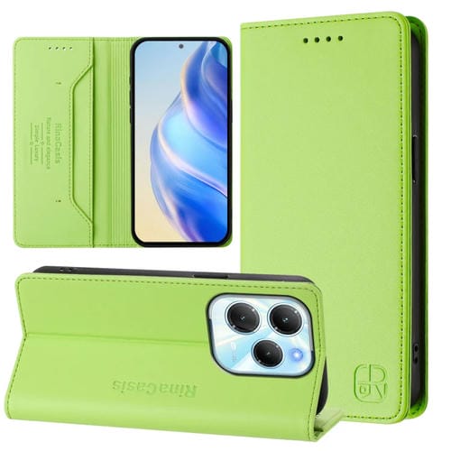 Funda de Cuero con Doble Pliegue y Succión Magnética RFID para Infinix Hot 40 4G y Hot 40 Play Rc01 (Verde Hierba)