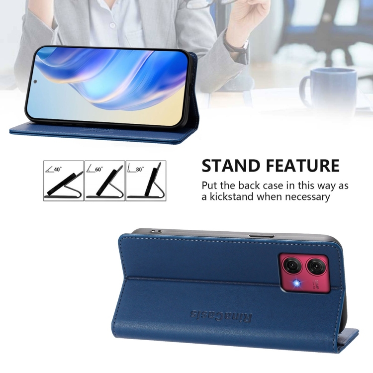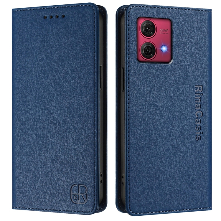Funda de Cuero doble pliegue con Succión Magnética Rfid para Motorola Moto G84 Rc01 (Azul Oscuro)