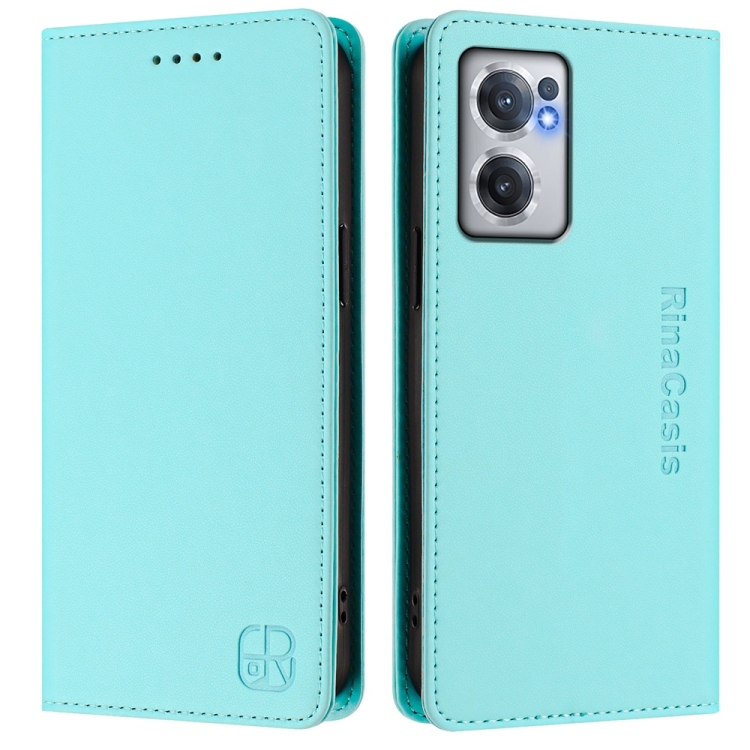 Funda de Cuero con Doble Pliegue y Succión Magnética Rfid para OnePlus Nord Ce 2 5G Rc01 (Verde Menta)