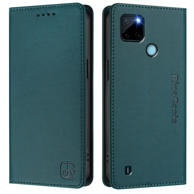 Funda de Cuero con Doble Pliegue y Succión Magnética Rfid para Realme C21Y Rc01 (Verde Oscuro)