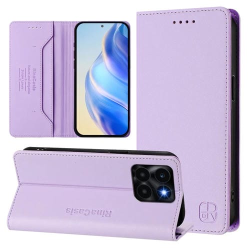 Funda de Cuero Rfid para Honor X6A Rc01 con Doble Pliegue y Succión Magnética (Morado Claro)