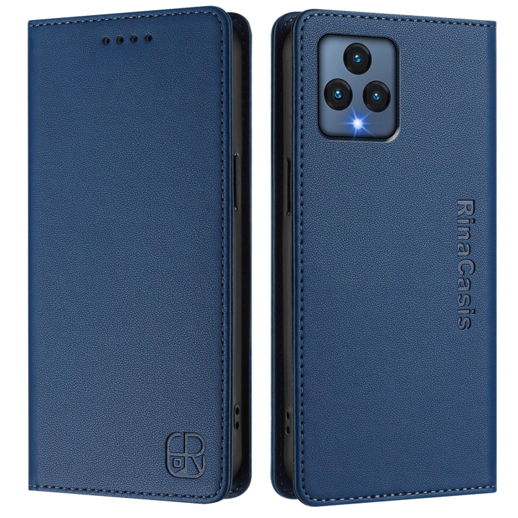 Funda de Cuero T-Mobile Revvl 6 5G/6X 5G Rc01 con Doble Pliegue y Succión Magnética Rfid (Azul Oscuro)