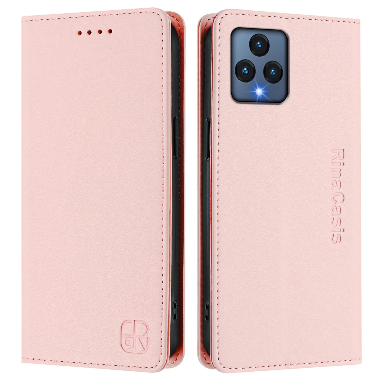 Funda de Cuero T-Mobile Revvl 6 5G/6X Rc01 con Doble Pliegue y Succión Magnética Rfid (Rosa)