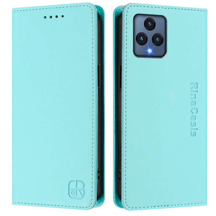 Funda de Cuero T-Mobile Revvl 6 5G/6X 5G Rc01 Doble Pliegue Succión Magnética Rfid (Verde Menta)
