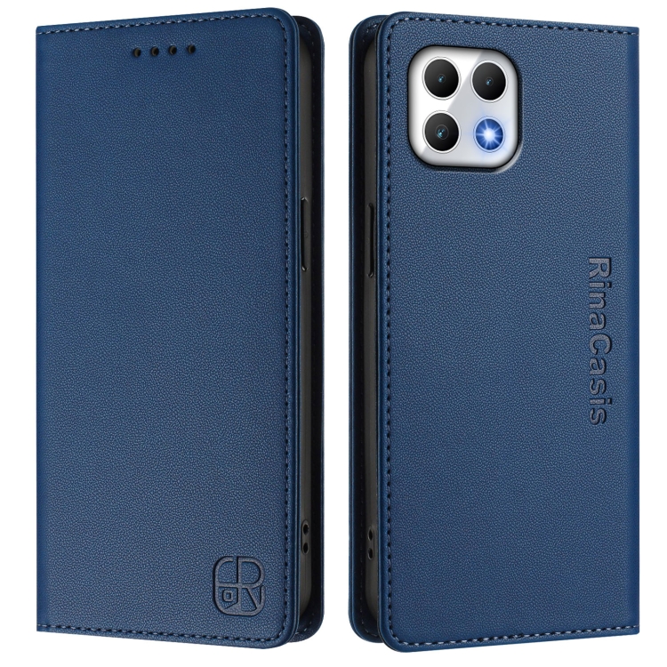 Funda de Cuero para Teléfono T-Mobile Revvl 7 5G Rc01 con Doble Pliegue y Succión Magnética Rfid (Azul Oscuro)