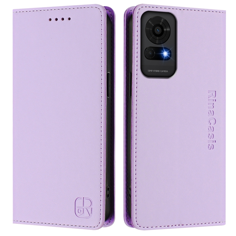 Funda de Cuero con Doble Pliegue y Succión Magnética Rfid para Teléfono TCL 50 Le Rc01 (Morado Claro)