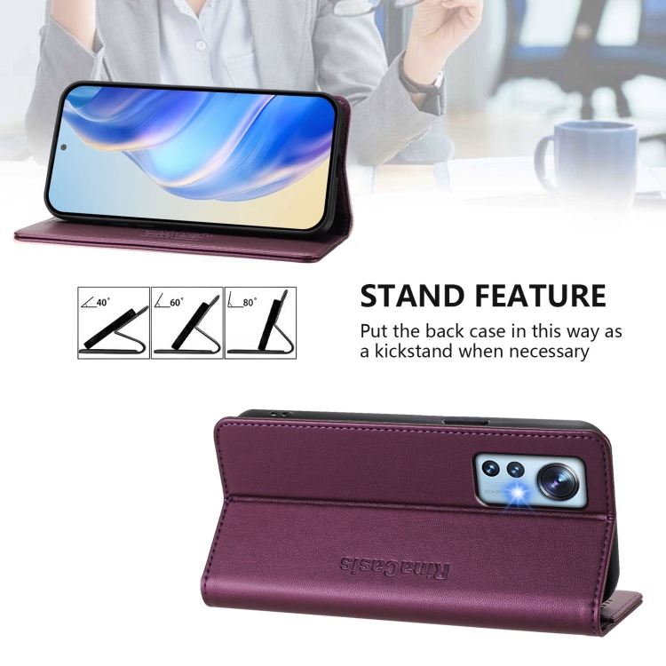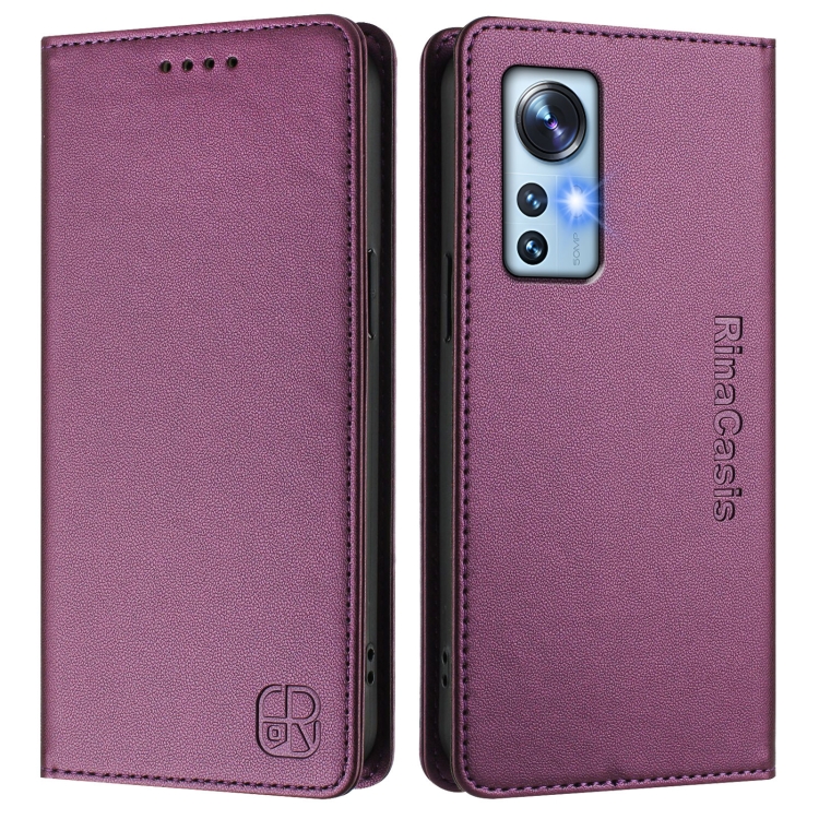 Funda de Cuero con Doble Pliegue y Succión Magnética Rfid para Xiaomi 12 5G / 12X 5G / 12S 5G Rc01 (Violeta)