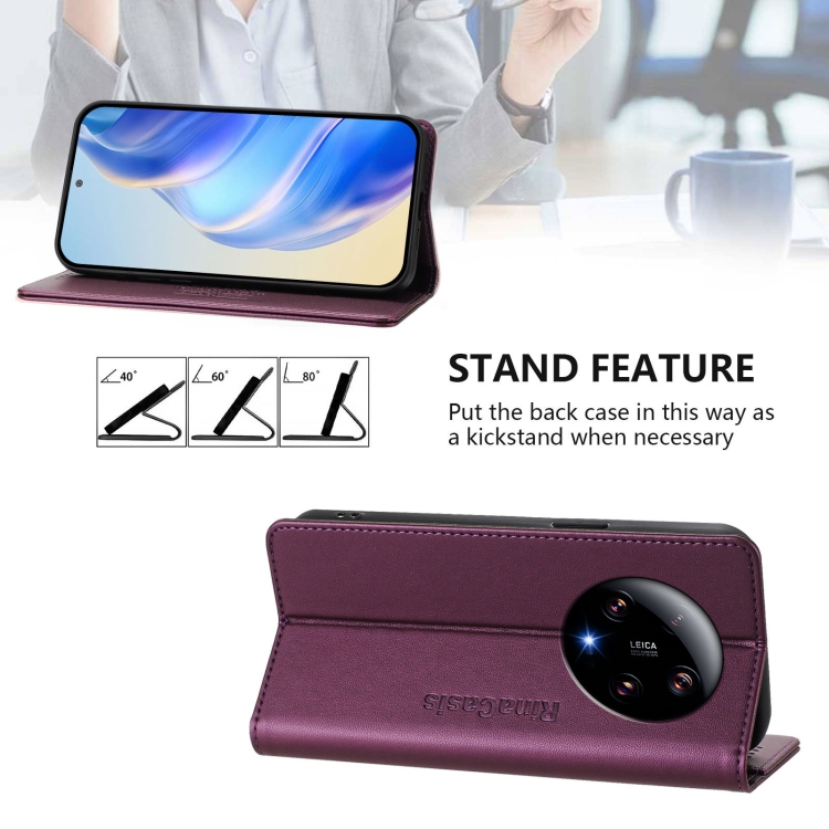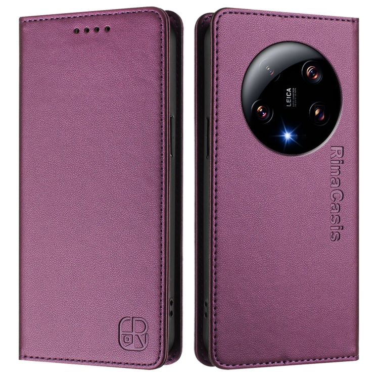 Funda de Cuero con Doble Pliegue y Succión Magnética Rfid para Xiaomi 13 Ultra Rc01 (Violeta)