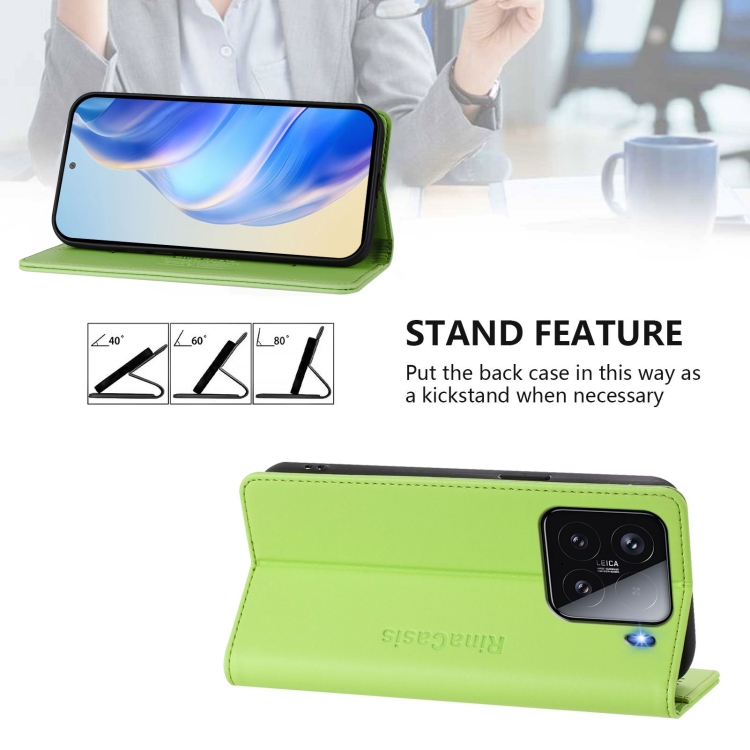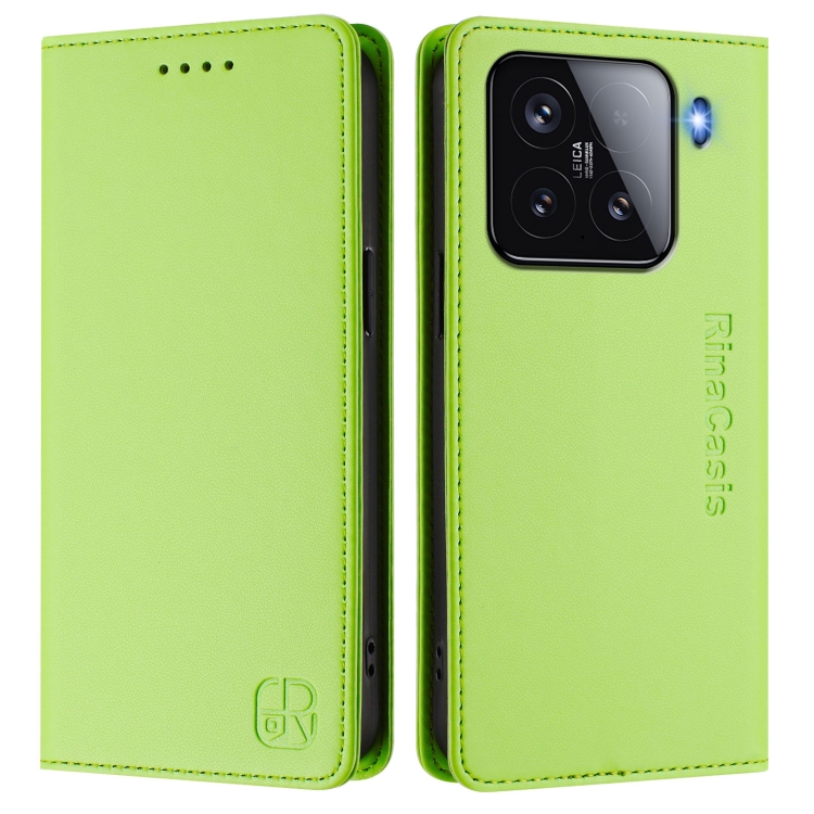 Funda De Cuero Con Doble Pliegue Y Succión Magnética Rfid Para Xiaomi 15 Rc01 (Verde Hierba)