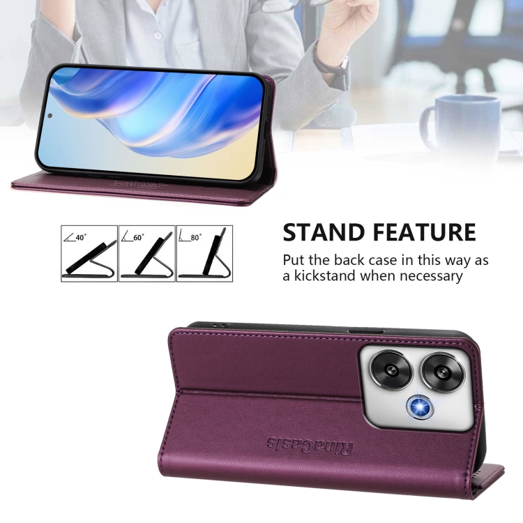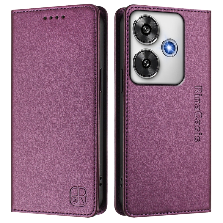 Funda de Cuero con Doble Pliegue y Succión Magnética Rfid para Xiaomi Poco F6 5G Rc01 (Violeta)