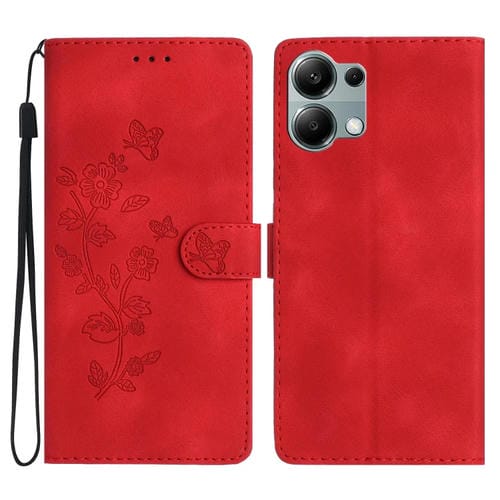 Funda de Cuero con Estampado de Flores y Mariposas para Redmi Note 13 Pro 4G (Rojo)
