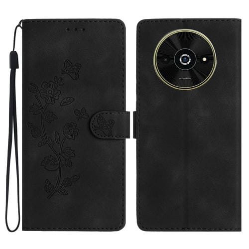 Funda de Cuero con Estampado de Flores y Mariposas para Xiaomi Poco C61 (Negro)