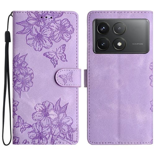 Funda de Cuero con Estampado de Flores y Mariposas para Xiaomi Poco F6 Pro (Morado)