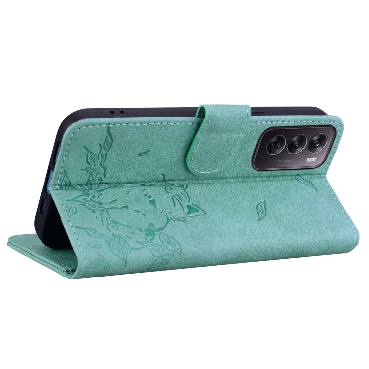 Funda de Cuero con Estampado de Gato Lindo para Oppo Reno12 5G Global (Verde)
