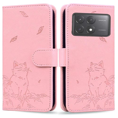 Funda de Cuero con Estampado de Gato para Xiaomi Poco X6 5G (Rosa)
