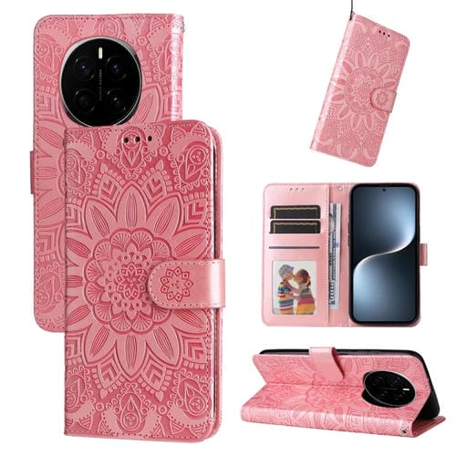 Funda de Cuero Honor Magic7 con Estampado de Girasoles en Relieve (Oro Rosa)