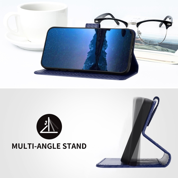 Funda de Cuero con Hebilla de Fibra de Carbono para Tecno Pova 6 Neo 5G Spark 30 5G Yx0070 con Cordón (Azul)