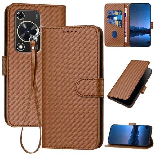 Funda de Cuero con Hebilla de Fibra de Carbono y Cordón para Huawei Enjoy 70/Nova Y72 Yx0070 (Café)