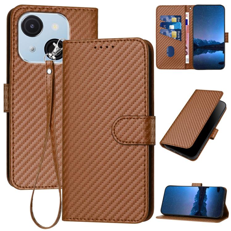 Funda de Cuero con Hebilla Fibra de Carbono y Cordón para Teléfono Itel A50C Yx0070 (Café)