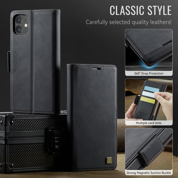 Funda de Cuero Magnética Rfid Magsafe con Hebilla Lateral para iPhone 11 Autspace A11 (Negra)