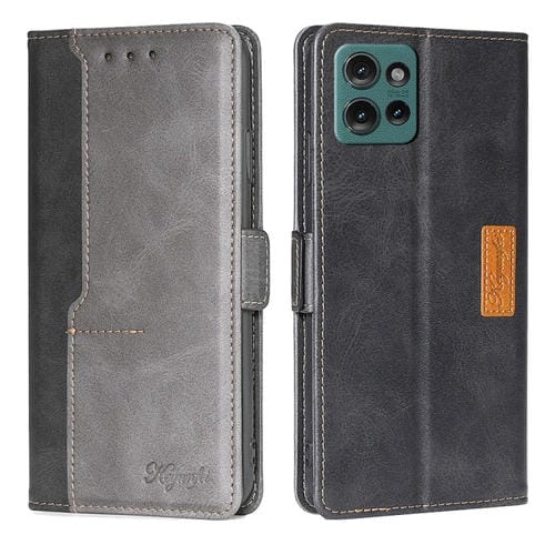 Funda de Cuero para Motorola Edge 50 5G con Hebilla Lateral y Color de Contraste (Negro y Gris)