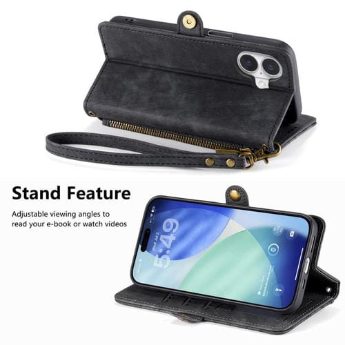 Funda de cuero con hebilla lateral y cremallera geométrica para iPhone 17 (negra)