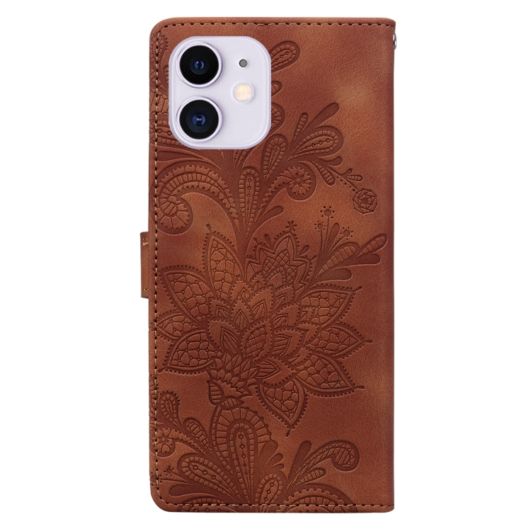 Funda de Cuero con Hebilla Magnética y Diseño Floral En Relieve para iPhone 11 (Marrón)