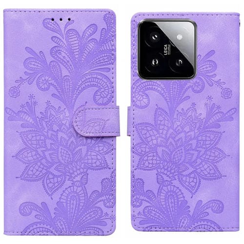 Funda De Cuero Con Hebilla Magnética Y Encaje Floral En Relieve Para Xiaomi 14 (Morado)