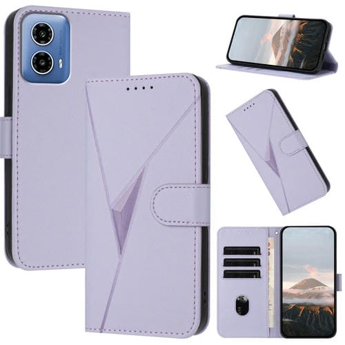 Funda de Cuero con Hebilla y Diseño Triangular para Motorola Moto G34 (Morado Claro)