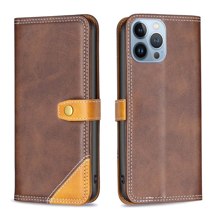 Funda de Cuero para iPhone 13 Pro con Hilo de Coser Doble a Juego (Marrón)