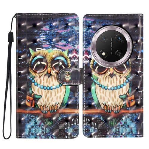 Funda de Cuero con Patrón 3D para Honor X9C 5G (Búho de Ojos Grandes)