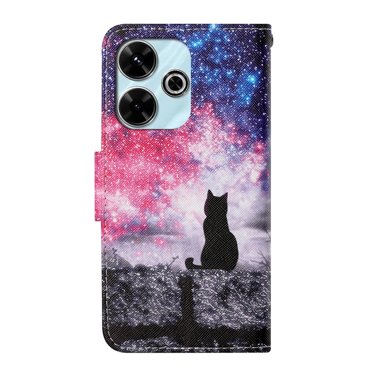 Funda de Cuero con Patrón de Dibujo de Colores para Xiaomi Redmi 13 4G (Gato Estrellado)